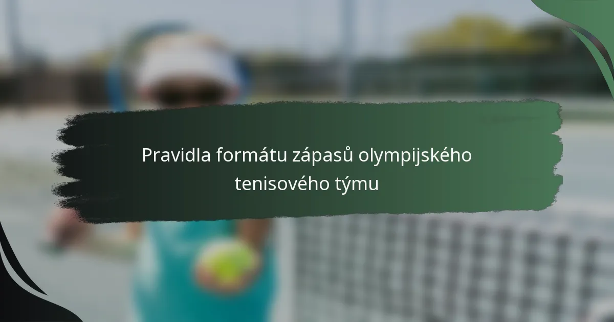 Formát týmového zápasu v olympijském tenise zahrnuje týmy, které soutěží v sérii singlových a deblových zápasů, aby určili celkového vítěze, přičemž každý tým se skládá z několika hráčů. Tento formát zdůrazňuje národní zastoupení, na rozdíl od individuálního zaměření turnajů ATP a WTA, a vytváří jedinečnou soutěžní atmosféru. Od svého zavedení v roce 1896 se olympijský tenis výrazně vyvinul, přizpůsobující svá pravidla a strukturu změnám ve sportu a společnosti.